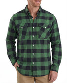 Vance VB740GnB Green Men's Long Sleeve Plaid Snap Down Casual Flannel Shirt, 100% Cotton