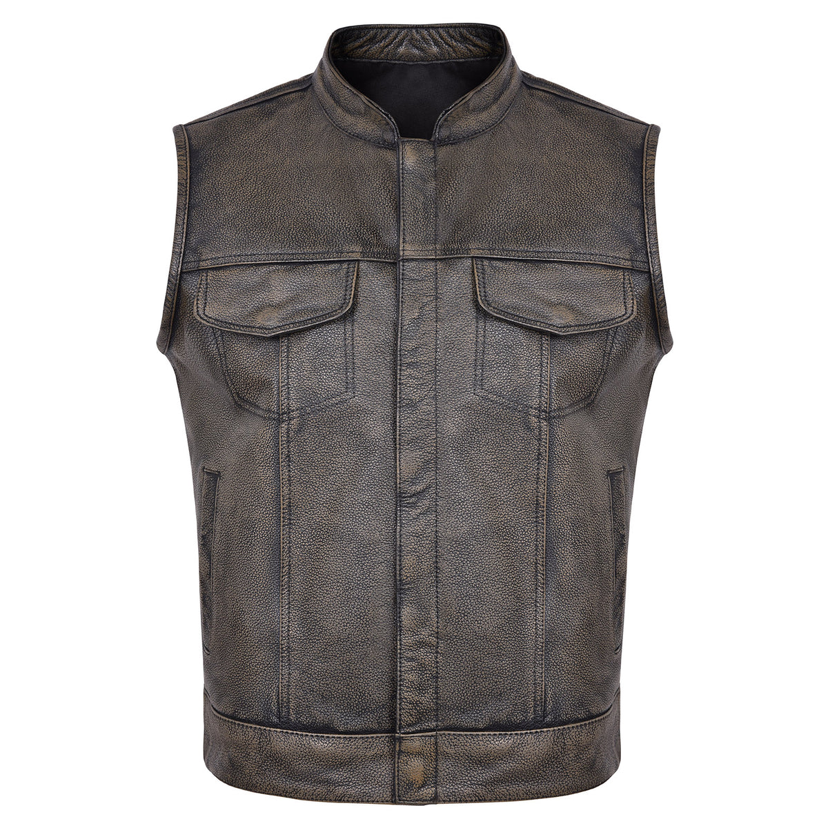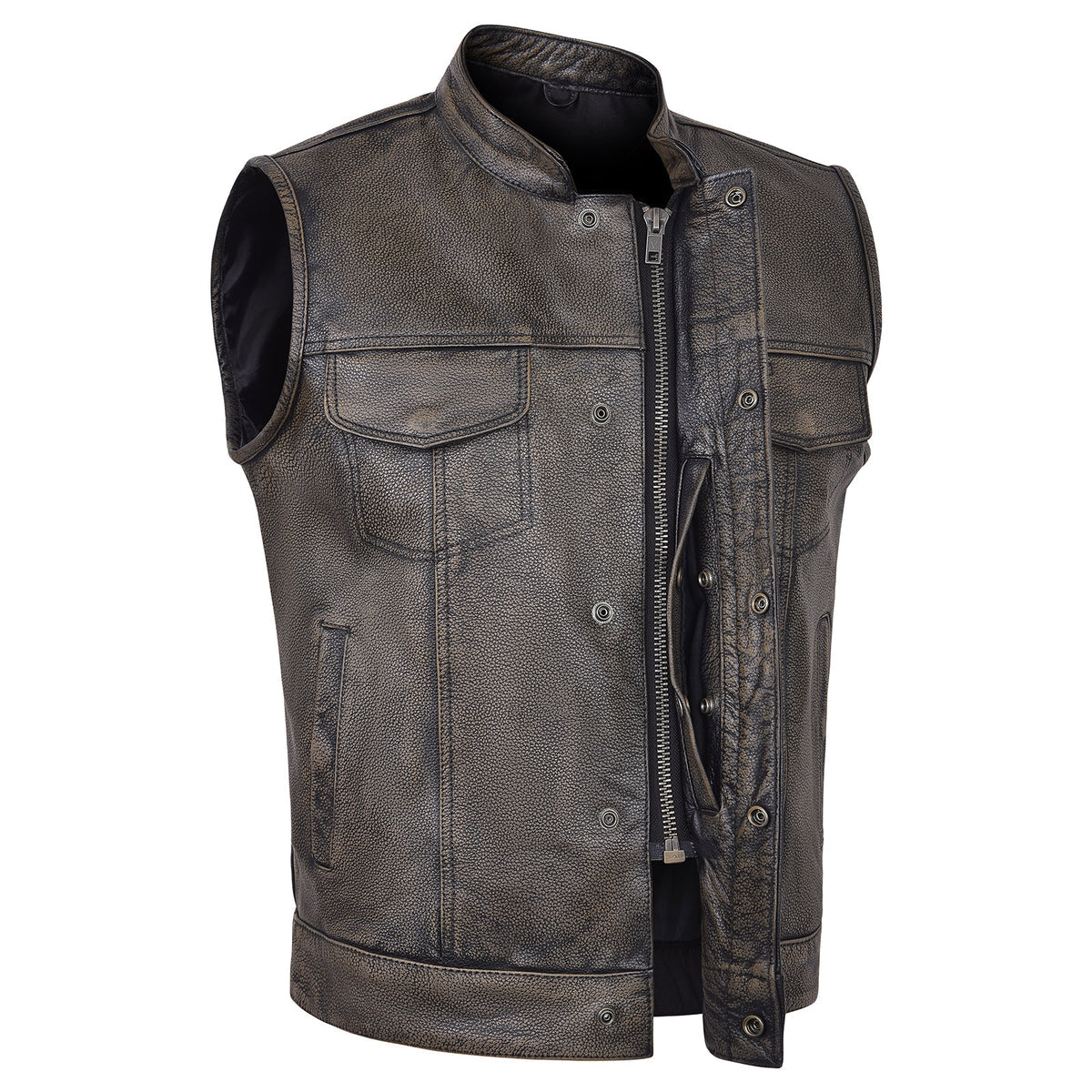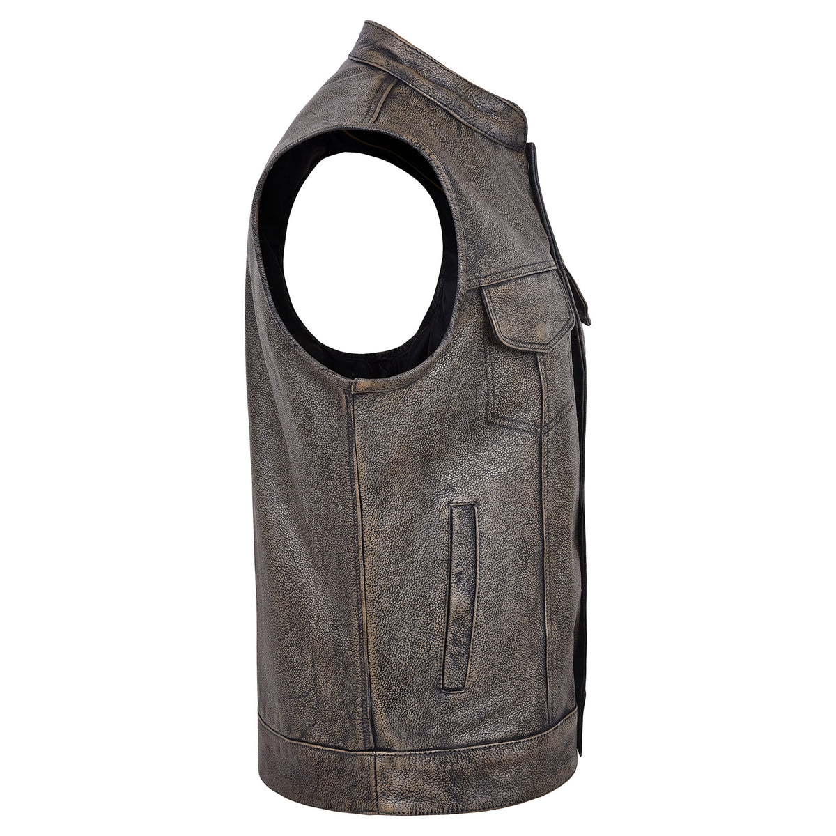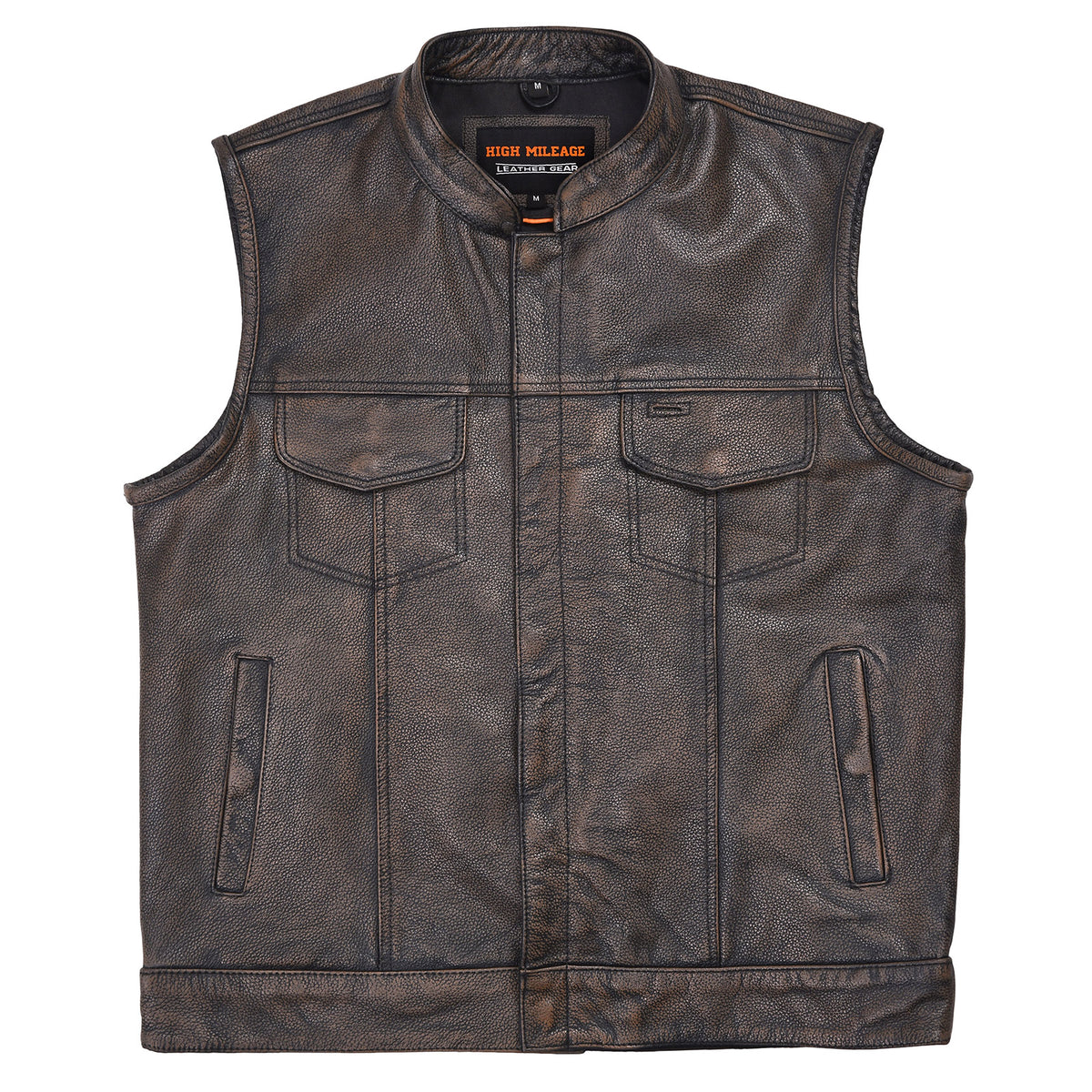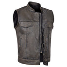 High Mileage HMM914DB Mens Premium Cowhide Distressed Brown SOA Style Biker Club Leather Motorcycle Vest
