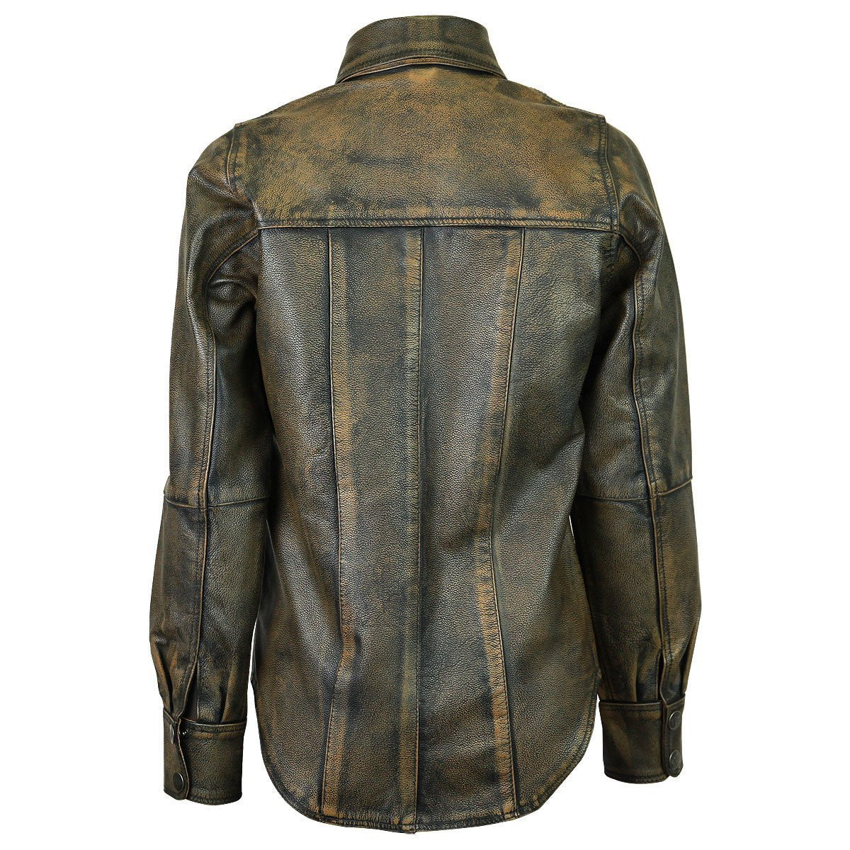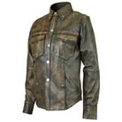 HML604DB Women's Distressed Brown Cowhide Leather Shirt